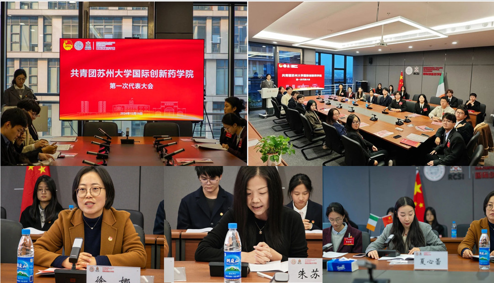 2024年12月18日下午,共青团苏州大学国际创新药学院第一次代表大会在国际创新中心906室隆重召开。苏州大学团委副书记徐娜、国际创新药学院党委副书记、副院长朱苏静、国际创新药学院团委负责人夏心蕾出席会议。