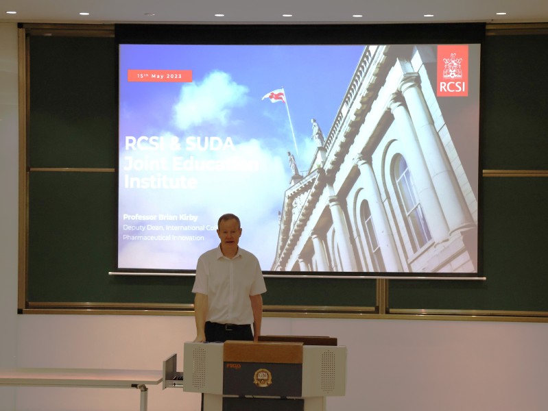 随后,RCSI的Brian Kirby教授向与会人员重点介绍了苏州大学与RCSI合作的最新成果,即国际创新药学院。他指出,未来国际创新药学院将不仅致力于学生科研能力的培养,同时也会注重其学术水平与领导能力、合作能力、沟通能力的结合,以培养出更多国际化、跨学科的复合型药学人才。