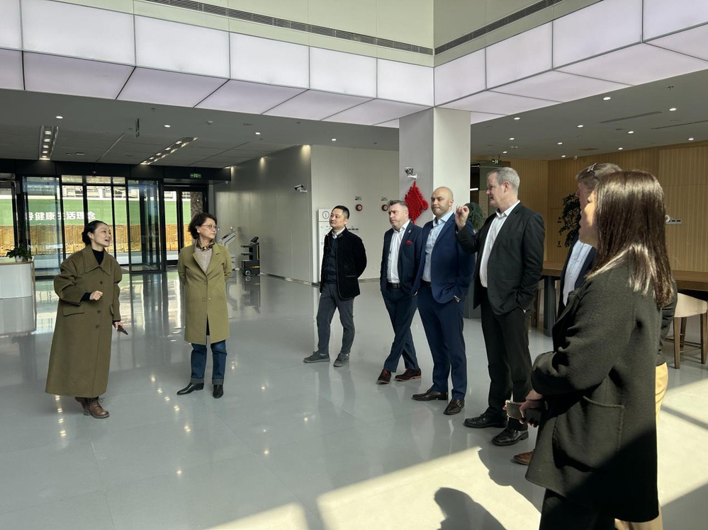 午餐后,代表团一行先后参观了体育馆、教学中心、学术交流中心等地,未来校区管委会副主任王宇向外方详细介绍了未来校区的建设情况以及未来的发展规划,爱方代表对我校未来校区的现代化设施和优美的校园环境给予了高度评价。
