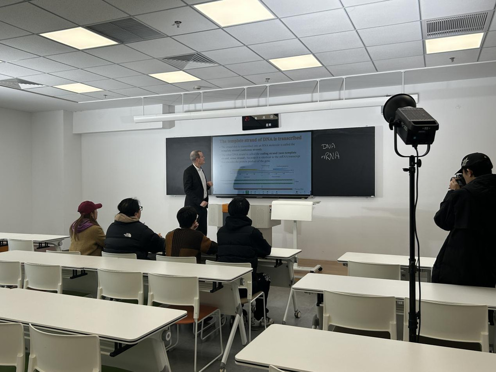 随后,国际创新药学院爱方院长Brian Kirby教授亲自协助拍摄学院招生宣传片。他凭借丰富的经验和独到的视角,为宣传片注入了新的活力和创意。宣传片将充分展示学院的特色与优势,吸引更多优秀的学子前来求学。