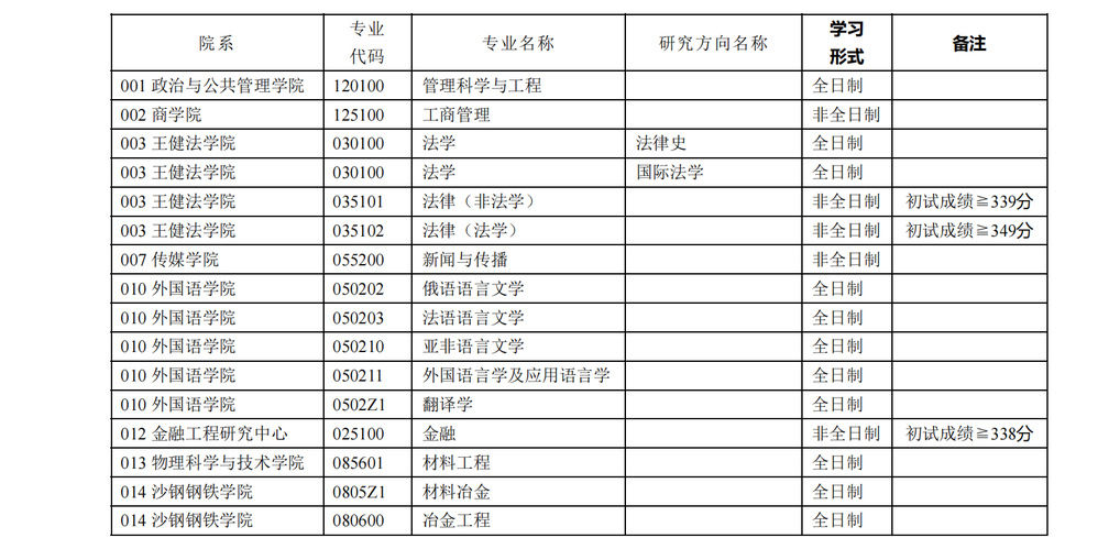 二、接收调剂专业、开通调剂时间