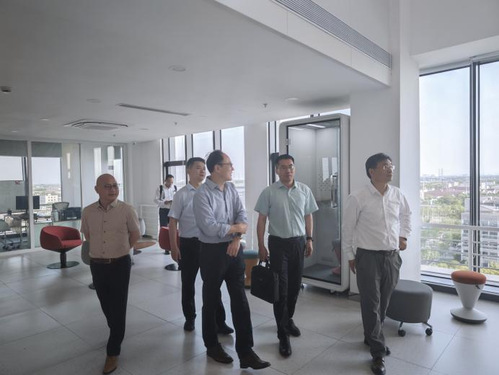 会后,方军一行参观了未来校区校园和国际创新药学院大楼,进一步了解国际创新药学院的建设进展。考察中,方军对国际创新药学院优越的办学条件和优美的校园环境表示高度赞赏。